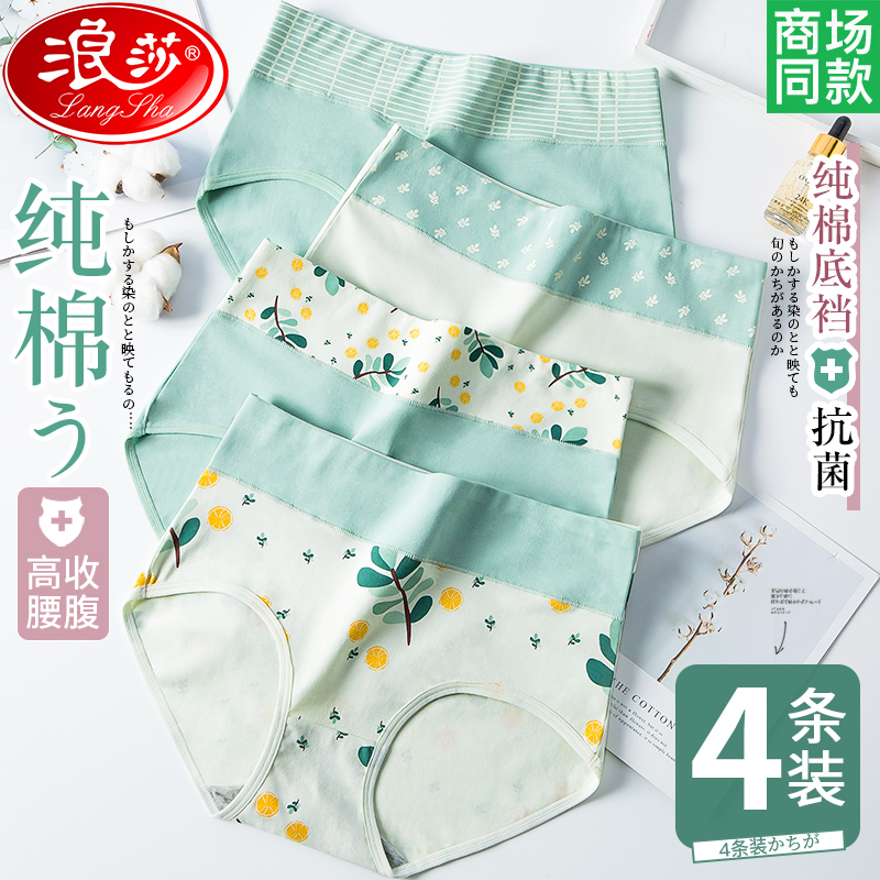 【产品名称:浪莎女士内裤女全棉100%纯棉裆胖mm中腰高腰少女学生日系印花三角】