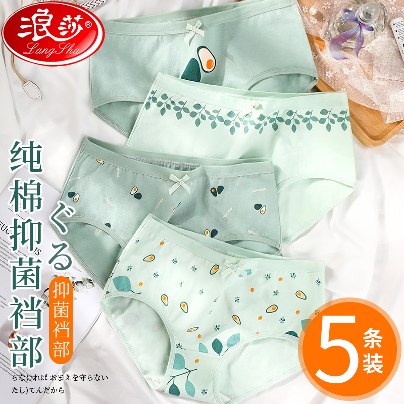 【产品名称:浪莎女士内裤女100%全棉纯棉裆抗菌中腰少女印花学生日系无痕三角】