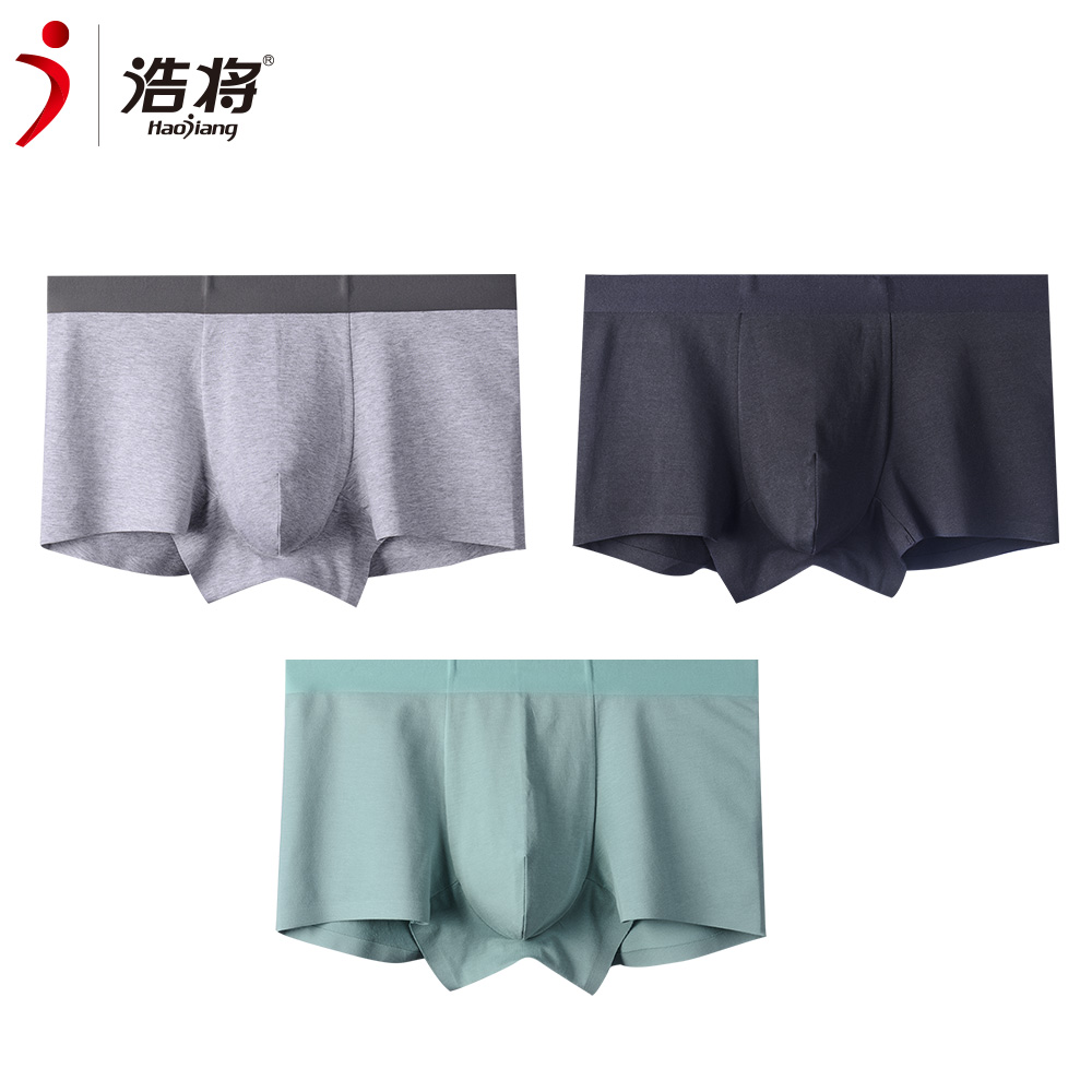 【产品名称:浩将【纯棉无痕石墨烯】男士内裤男平角裤春夏纯棉抑菌男短裤3条】