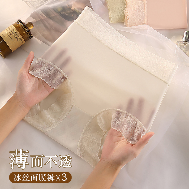 【产品名称:无痕面膜内裤冰丝款女高腰收腹提臀女士性感夏季薄款蕾丝女生新款】