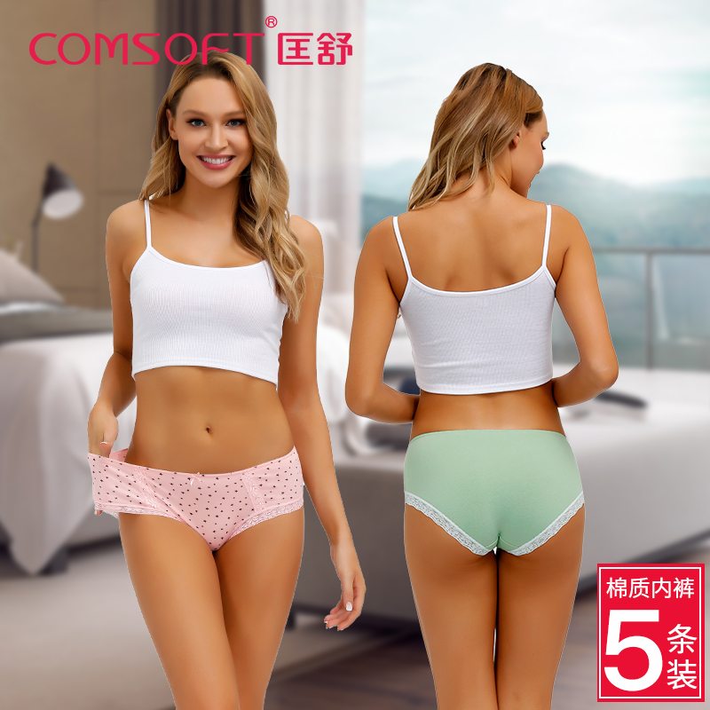 【产品名称:女士内裤纯棉裆中腰三角裤大弹力无痕内裤大码性感蕾丝包臀底裤头】