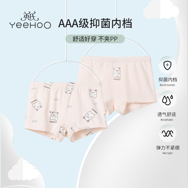 【产品名称:英氏AAA抑菌亲肤棉感儿童内裤男女童宝宝四角裤平角底裤透气短裤】