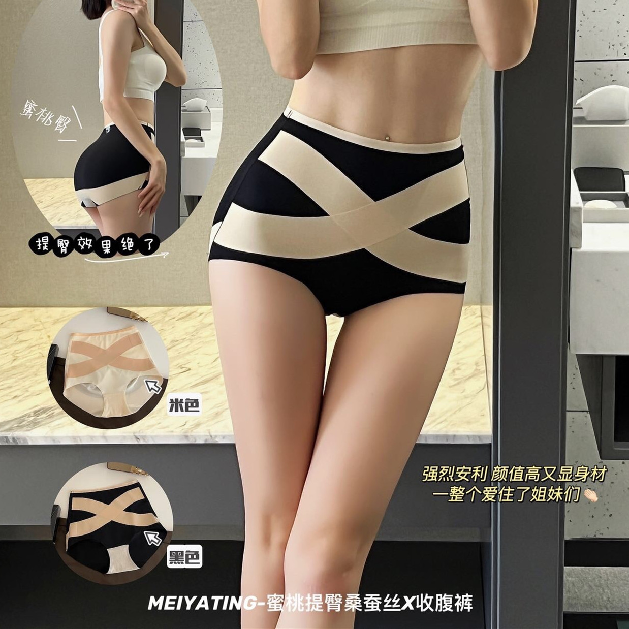 【产品名称:蜜桃提臀桑蚕丝X型交叉高腰收腹裤大码包臀女士三角内裤透气舒适】