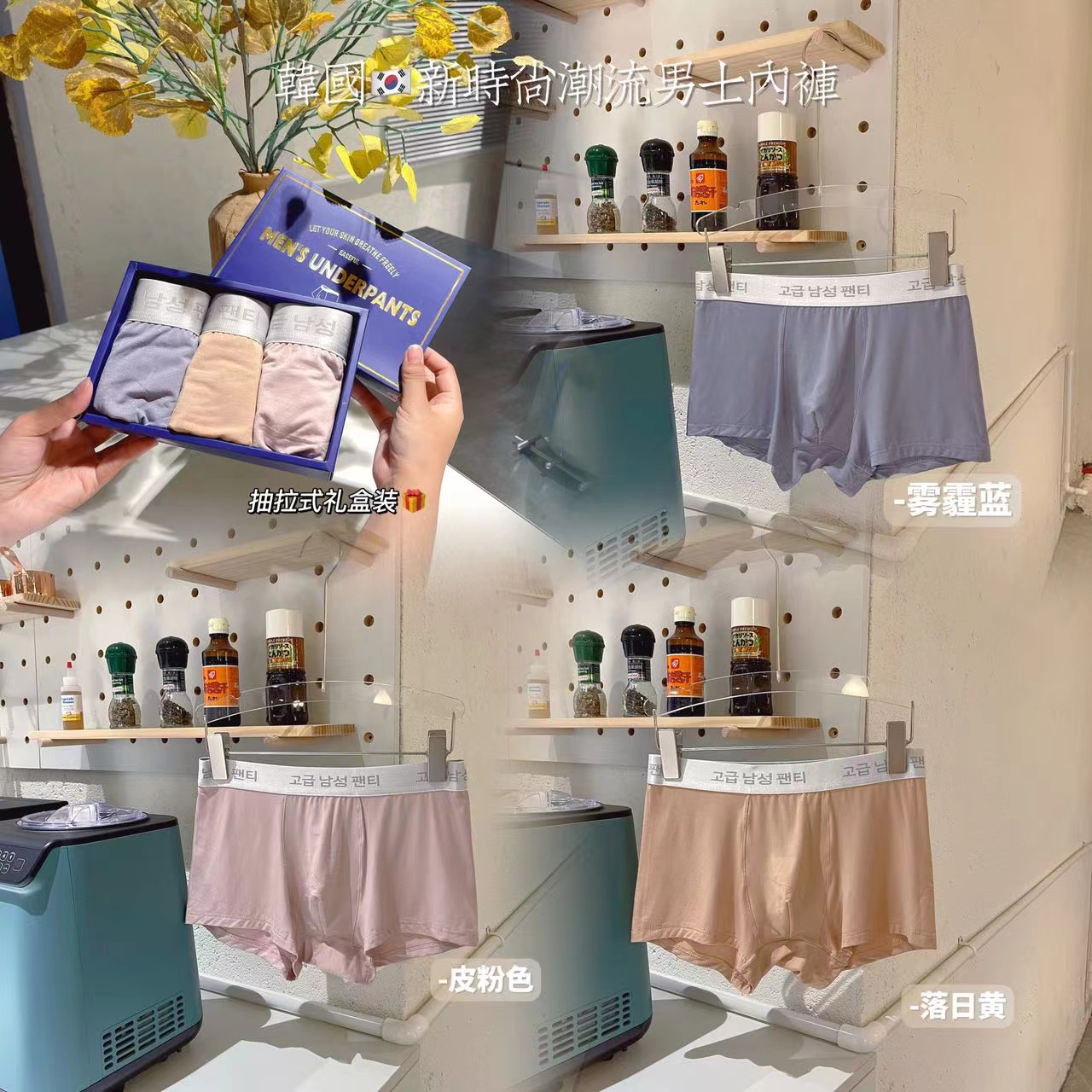 【产品名称:韩国新时尚潮流内裤男士无痕裸感平角短裤透气抑菌四角宽边腰底裤】
