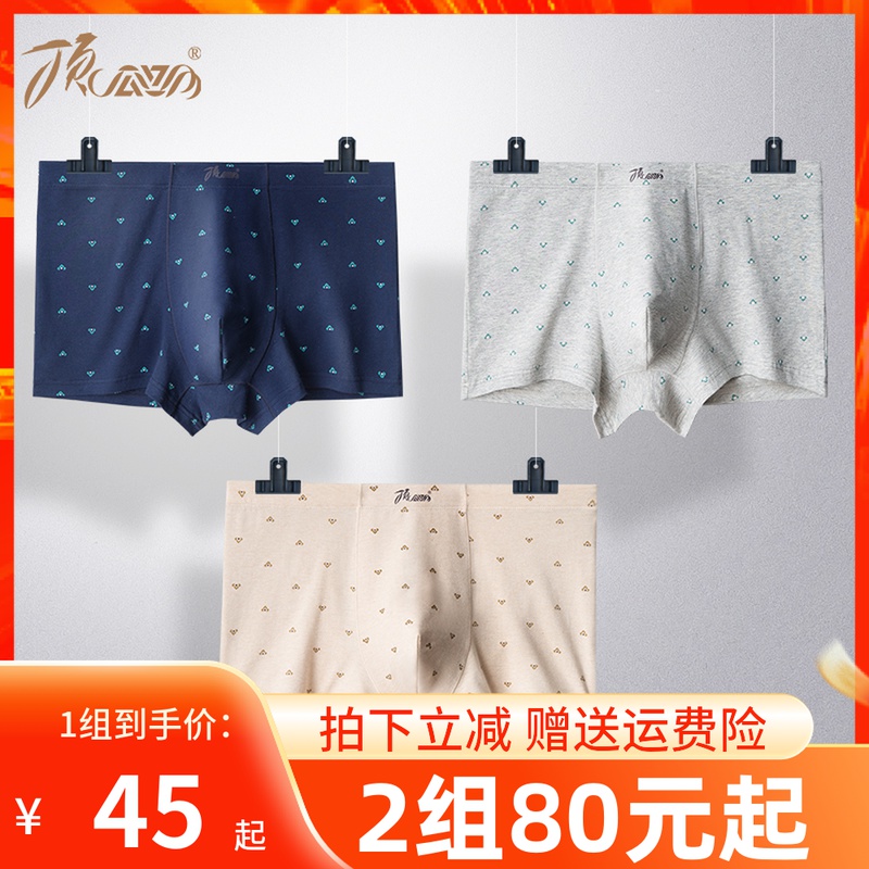 【产品名称:顶呱呱内裤男纯棉中腰四角裤头棉质面料大码男生透气纯棉平角裤】
