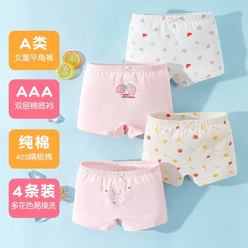 【产品名称:【小尾狐狸】无骨儿童内裤女童纯棉平角小女孩四角短裤中大童全棉】