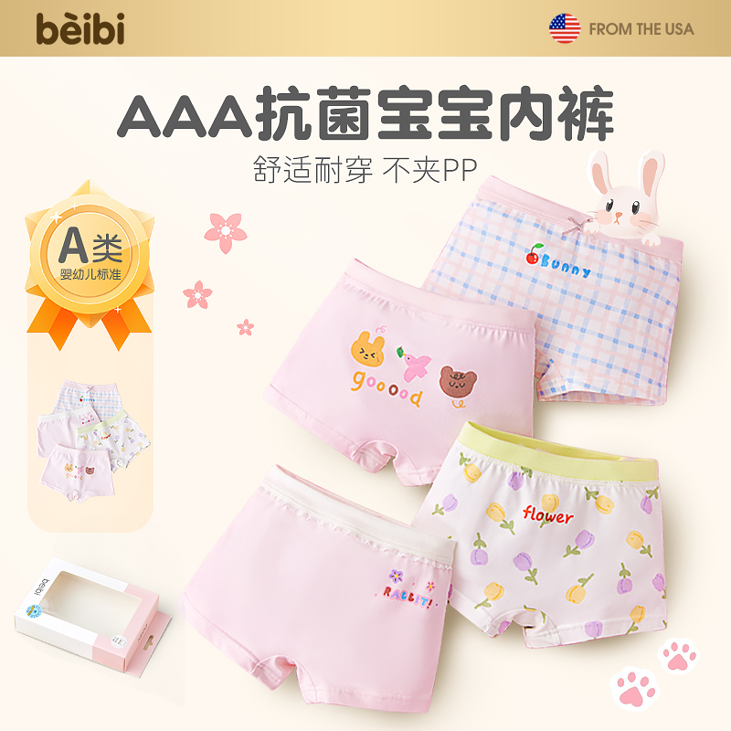 【产品名称:贝比宝宝内裤纯棉女童抗菌不夹pp女孩四角短裤春秋中小童A类全棉】