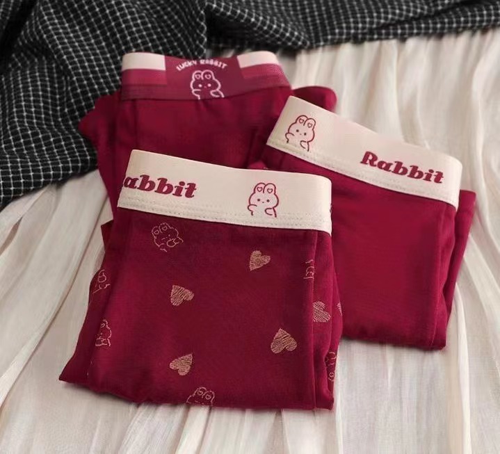 【产品名称:新年限定车厘子红兔子幸运男神裤兔年本命年大红内裤男生平角短裤】