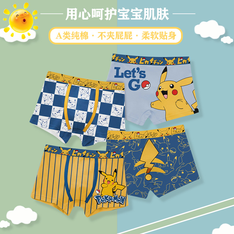 【产品名称:皮卡丘儿童内裤男童夏季薄款纯棉不夹pp四角平角中大童男孩岁短裤】