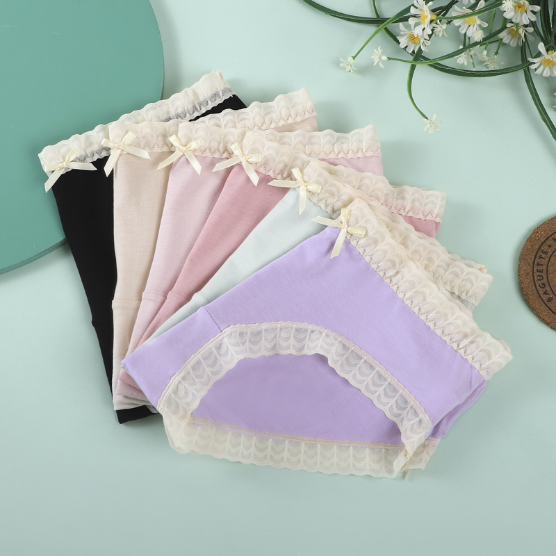 【产品名称:咔木拉女士内裤女莫代尔透气甜美中腰抑菌纯棉裆蕾丝黑色三角裤头】