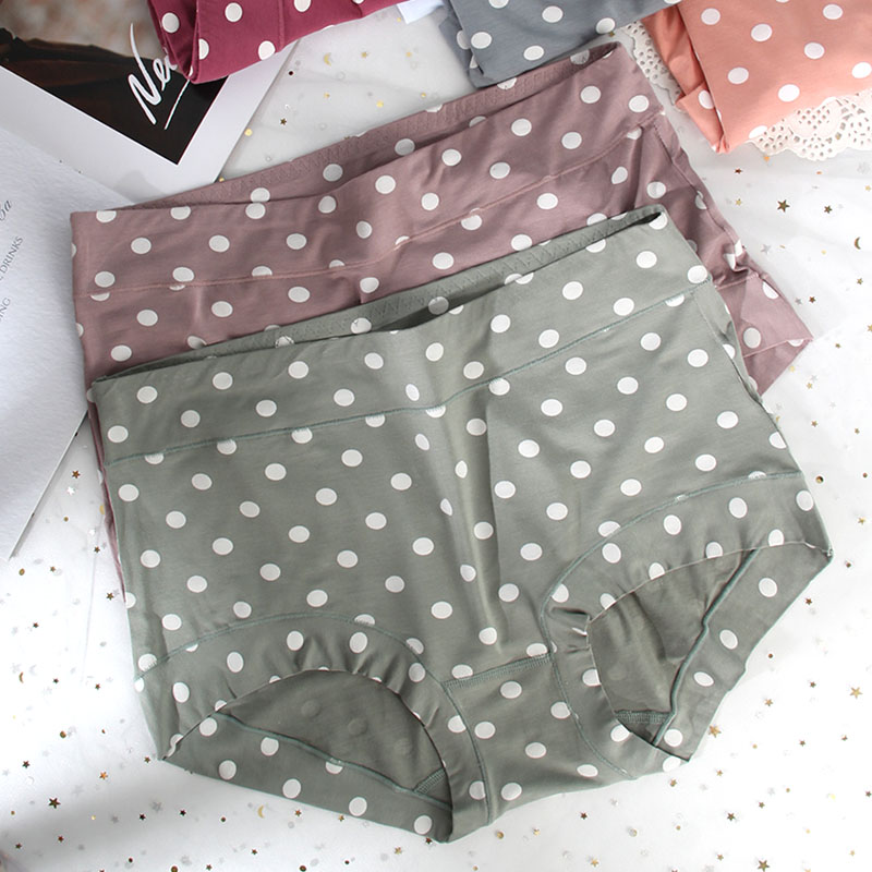 【产品名称:3条莫代尔高腰大码女士内裤圆点胖mm200斤三角裤包臀透气舒适妈妈】
