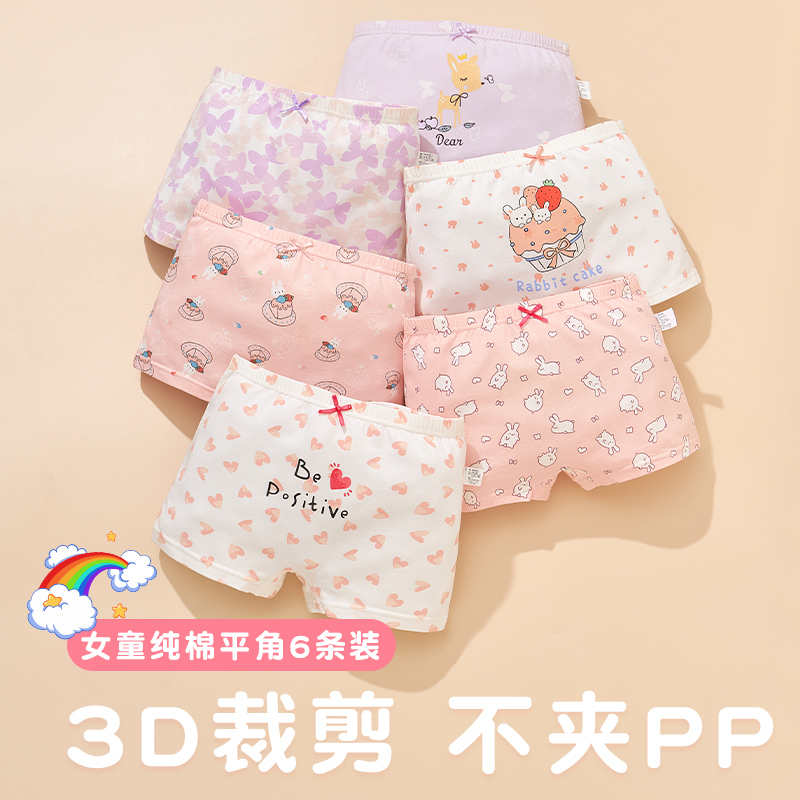 【产品名称:儿童内裤女童平角纯棉100%宝宝小女孩全棉中大童四角短裤不夹屁屁】