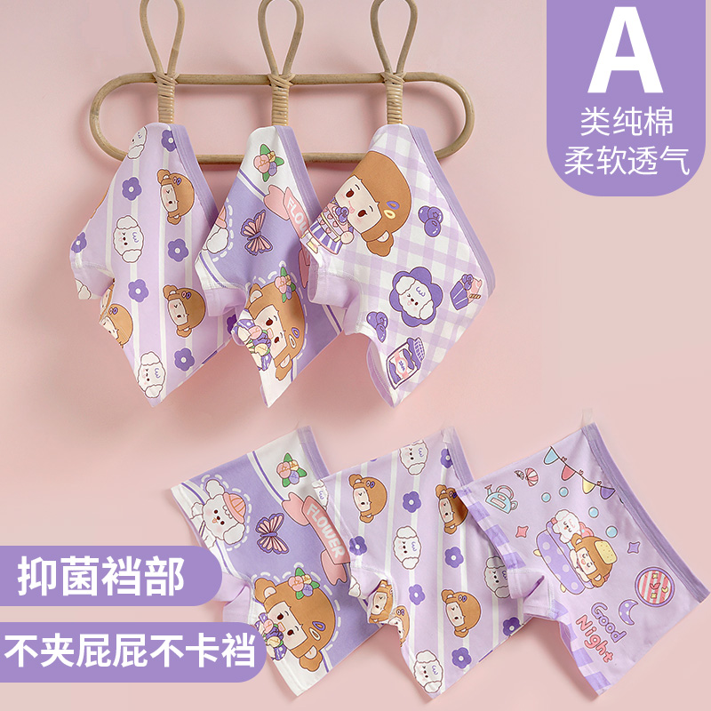 【产品名称:女童内裤平角儿童纯棉四角女宝宝女孩小孩小学生全棉裤头100%透气】