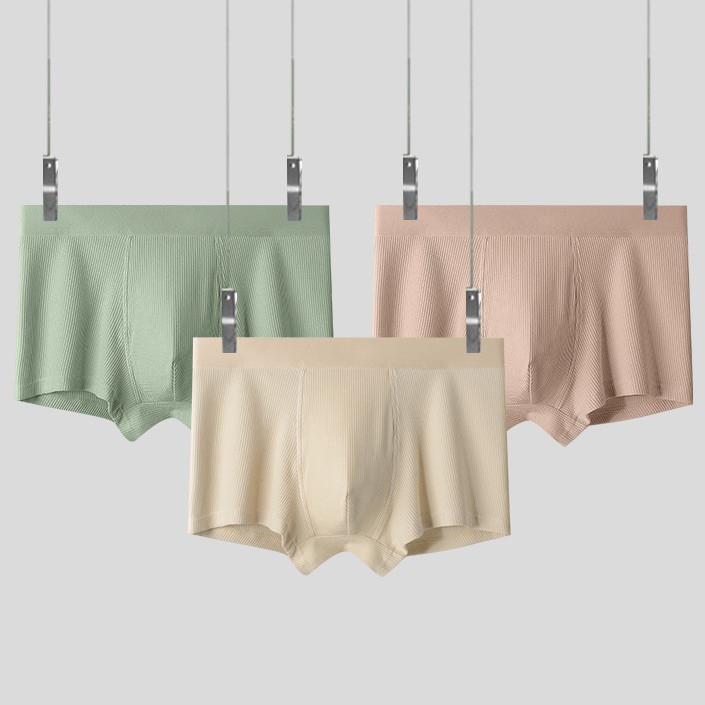 【产品名称:华夫格棉质舒适男士平角内裤青年简约竖纹小清新透气中腰四角短裤】