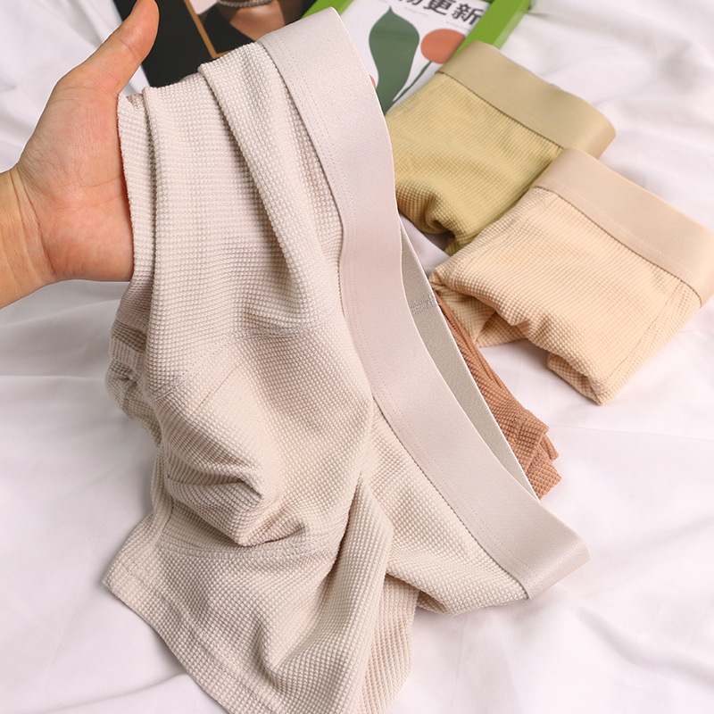 【产品名称:2023年男士净色华夫格平角内裤青年简约竖纹小清新透气中腰内裤男】