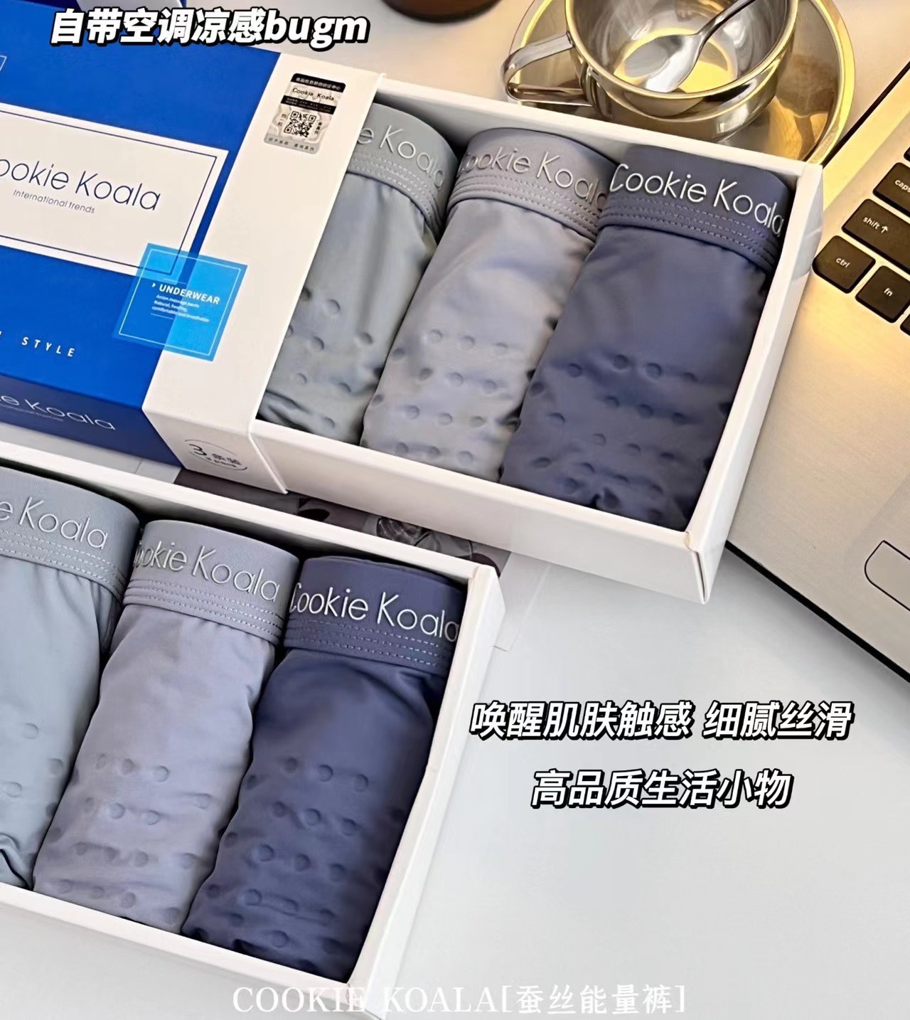 【产品名称:Cookiekoala能量蚕丝裤男士短裤舒适按摩透气内裤蚕丝裆抗菌底裤】