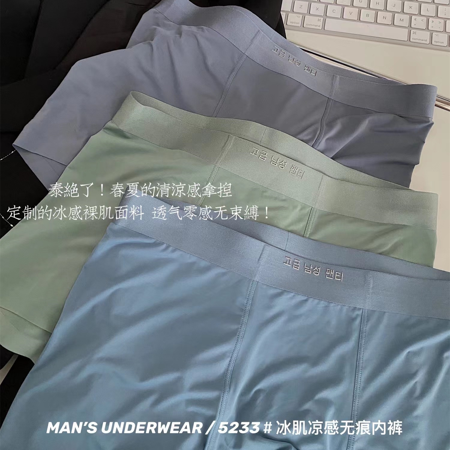 【产品名称:韩系冰肌凉感无痕内裤5233男友裤夏季冰爽速干莫代尔男士平角内裤】