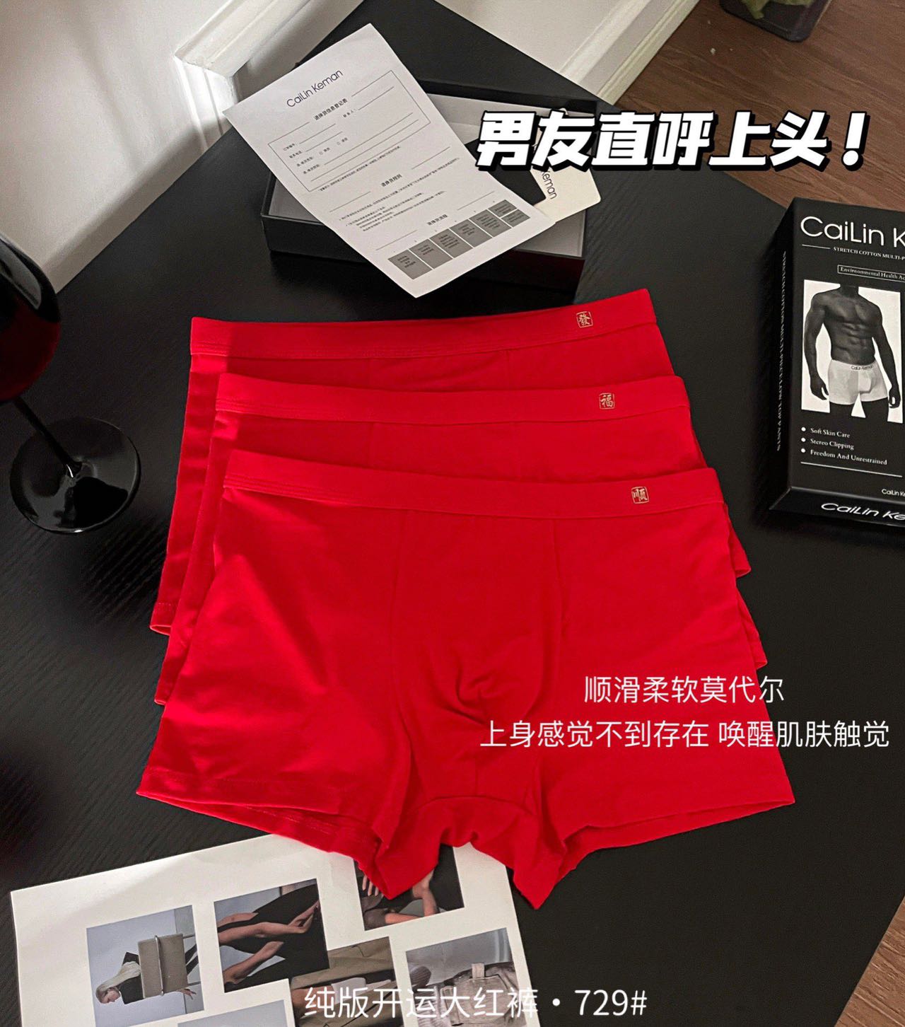 【产品名称:纯版开运大红裤729本命年男士内裤平角莫代尔大红色新年结婚底裤】