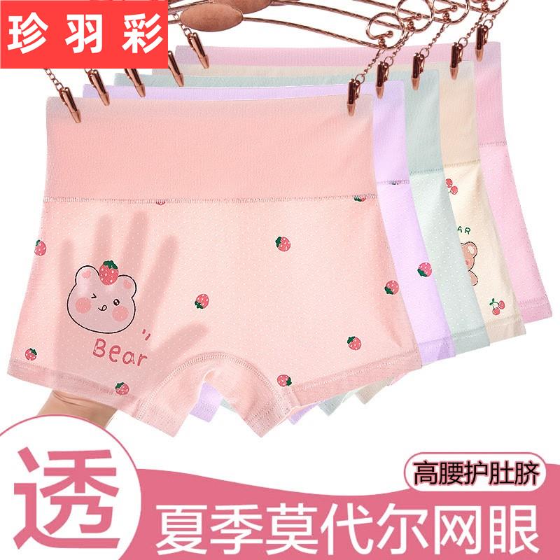 【产品名称:网眼薄款高腰护肚女童内裤平角莫代尔棉夏季平角中大童纯棉抑菌】