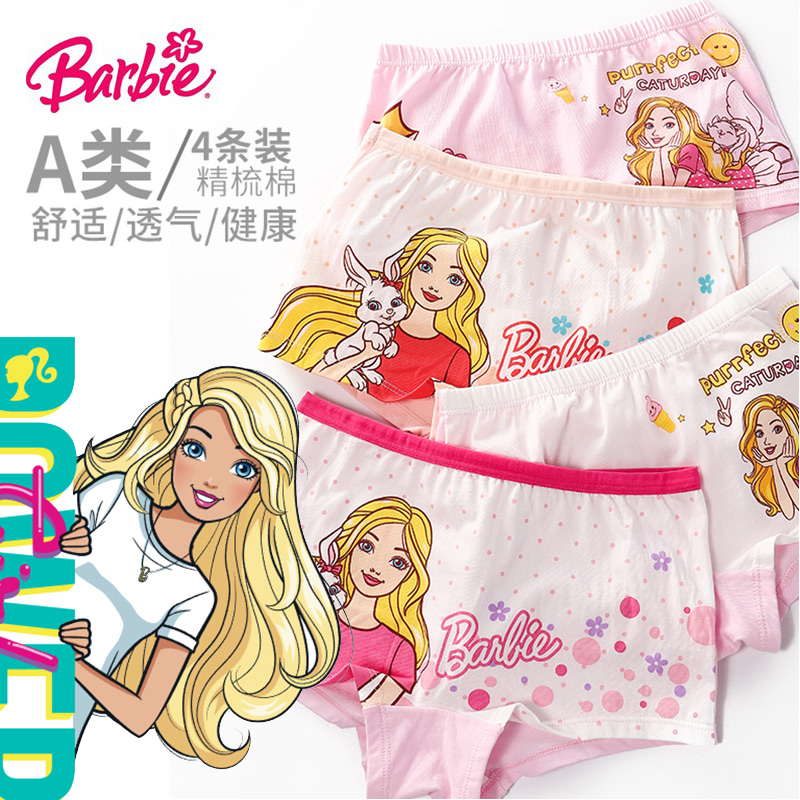 【产品名称:芭比纯棉儿童内裤女童宝宝透气棉质小孩中大童卡通三角裤面包短裤】