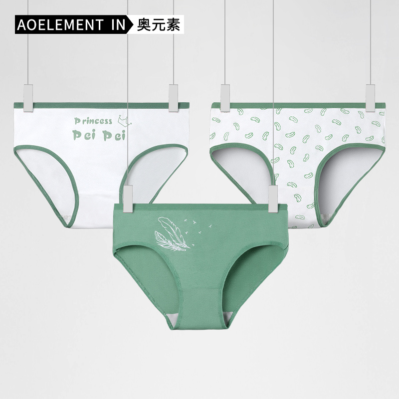 【产品名称:女士内裤纯棉全棉无痕少女生运动风日系中腰大码底裤透气三角短裤】