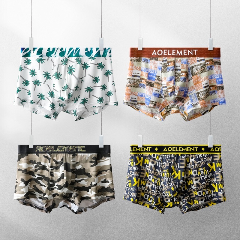 【产品名称:4条装男士内裤莫代尔四角裤个性感印花平角裤衩潮青年透气短裤头】