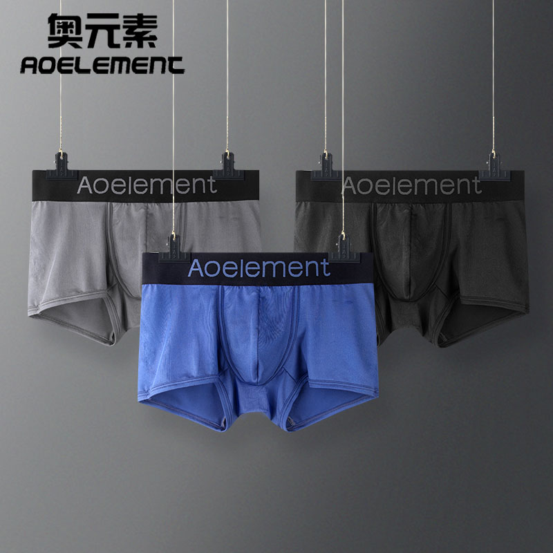 【产品名称:3条一片式透气薄款冰丝透明男士内裤男平角裤个性感四角裤头短裤】