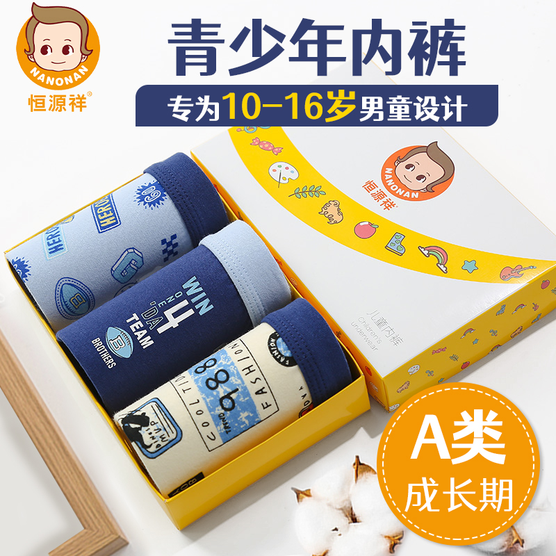 【产品名称:恒源祥青少年儿童内裤纯棉男童平角裤卡通全棉男孩中大童四角短裤】