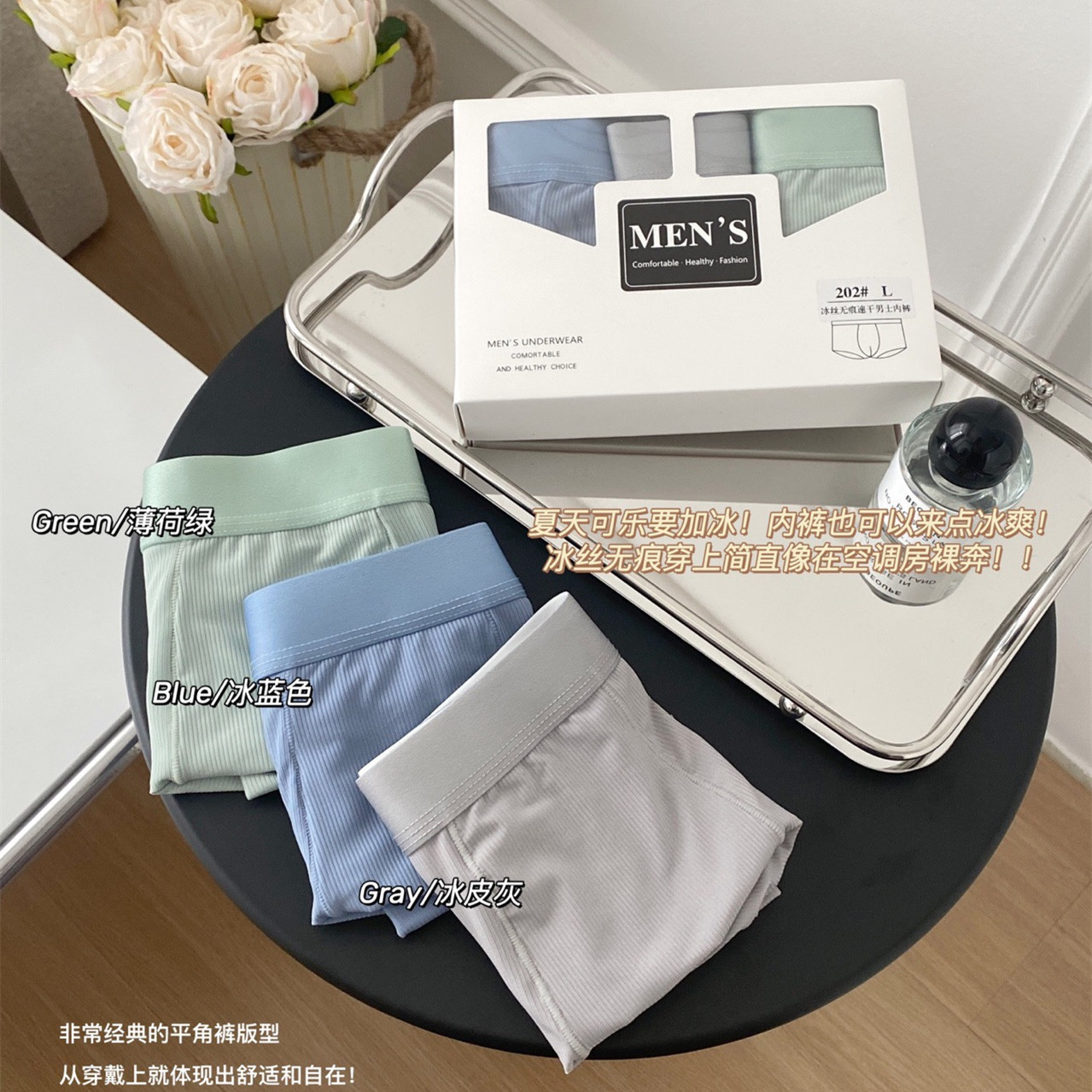 【产品名称:青年男士冰丝无痕速干平角加大码内裤202中腰舒适透气凉感四角裤】