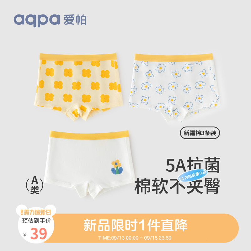【产品名称:[5A抗菌]aqpa爱帕 女童内裤3条装儿童四角裤纯棉平角短裤女孩宝宝】