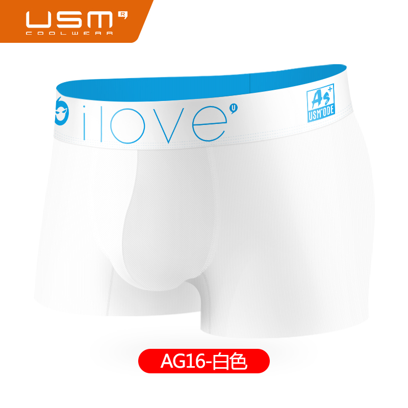 【产品名称:USM高端180支双面高弹男内裤平角裤吸湿快干健身运动白色男四角裤】