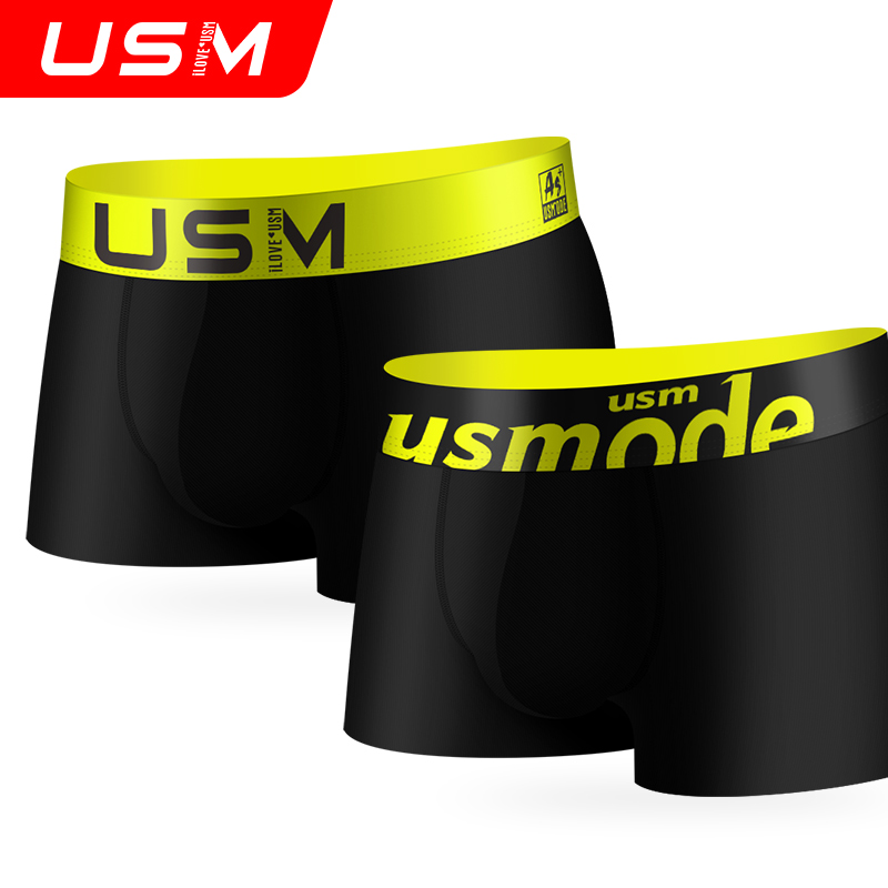 【产品名称:USM超柔180s高端男内裤抑菌透气 黑色平角裤运动高弹速干性感时尚】