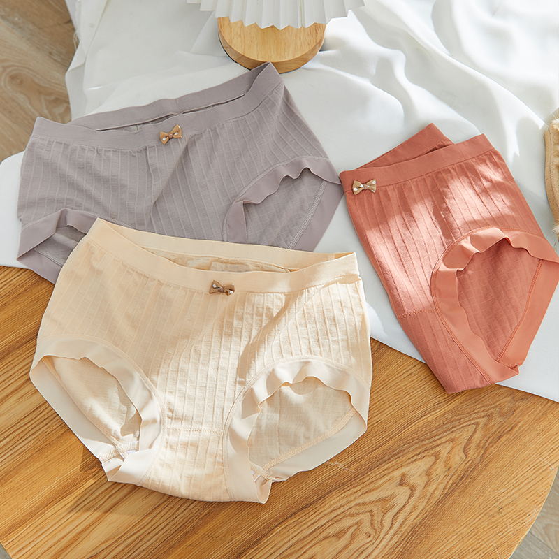 【产品名称:3条装纯棉裆不卷边内裤可爱中腰薄款女士三角裤学生少女裤头短裤】