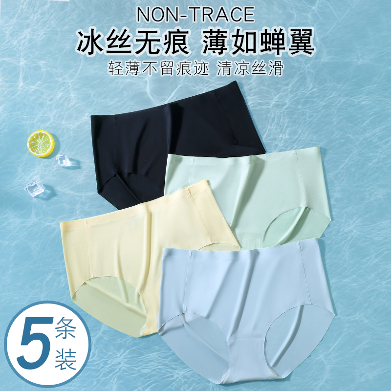 【产品名称:冰丝内裤女士无痕透气大码夏季少女学生中腰薄新款三角短裤头底裤】