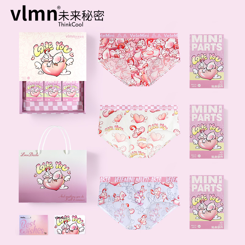 【产品名称:vlmn/女士内裤可爱卡通粉色少女风抗菌三角裤头情人节礼盒/爱你鸭】