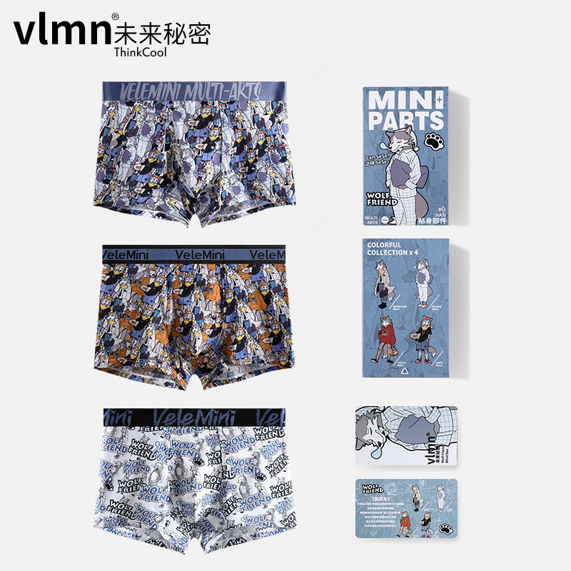 【产品名称:vlmn/未来秘密男士内裤纯棉印花四角平角裤情人节送男朋友/狼朋友】