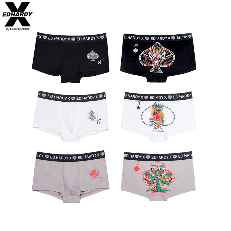 【产品名称:Ed hardyX男士内裤纯棉款四角裤头夏薄款男生短裤衩透气平角裤衩】