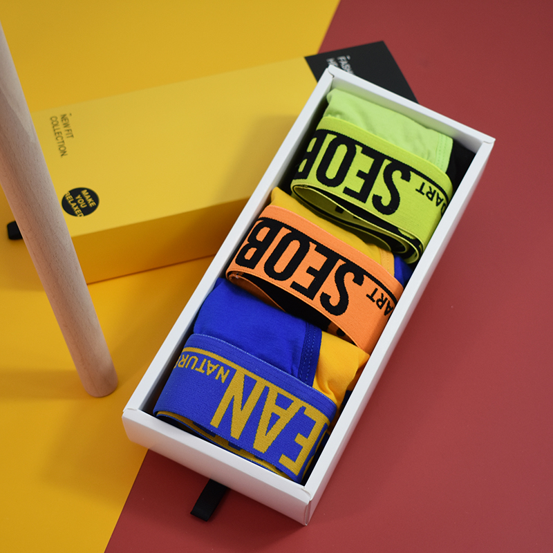 【产品名称:3条装女士内裤女纯棉透气宽边大码平角三角裤头les潮t拼接个性潮】