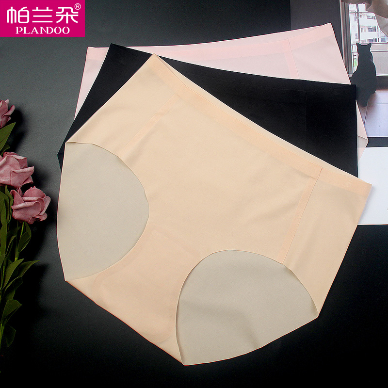 【产品名称:帕兰朵女士内裤中高腰无痕冰丝一片式夏弹力大码舒适全棉档薄裤头】