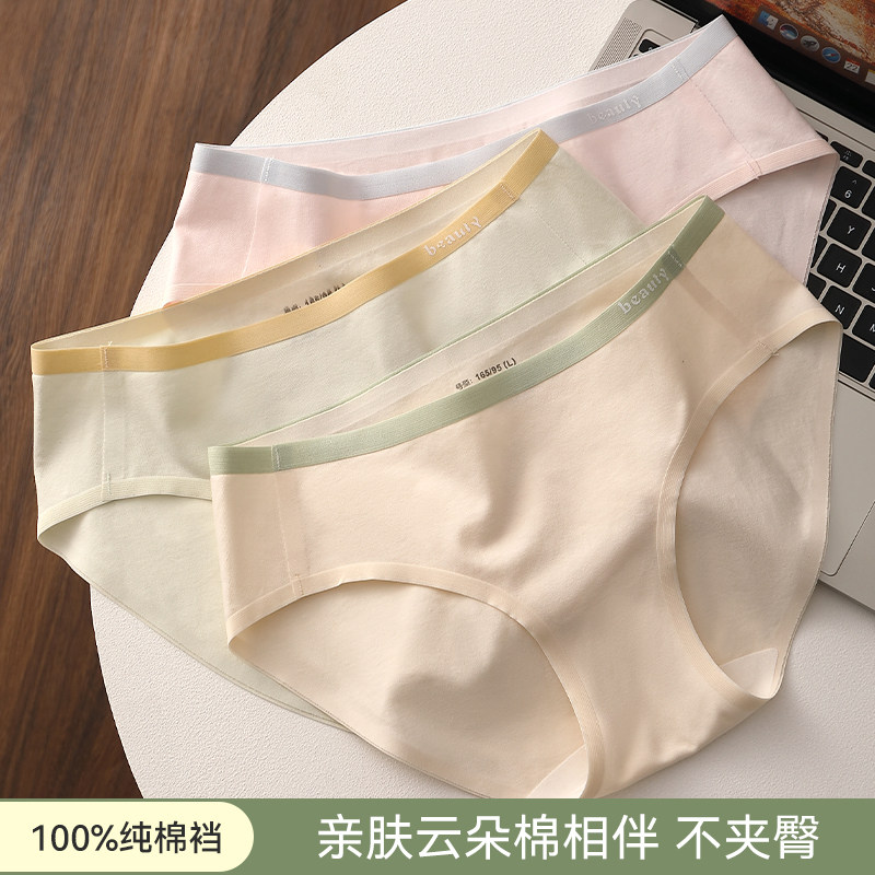 【产品名称:内裤女士纯棉全棉抗菌裆2023新款薄款中腰少女生无痕透气三角短裤】