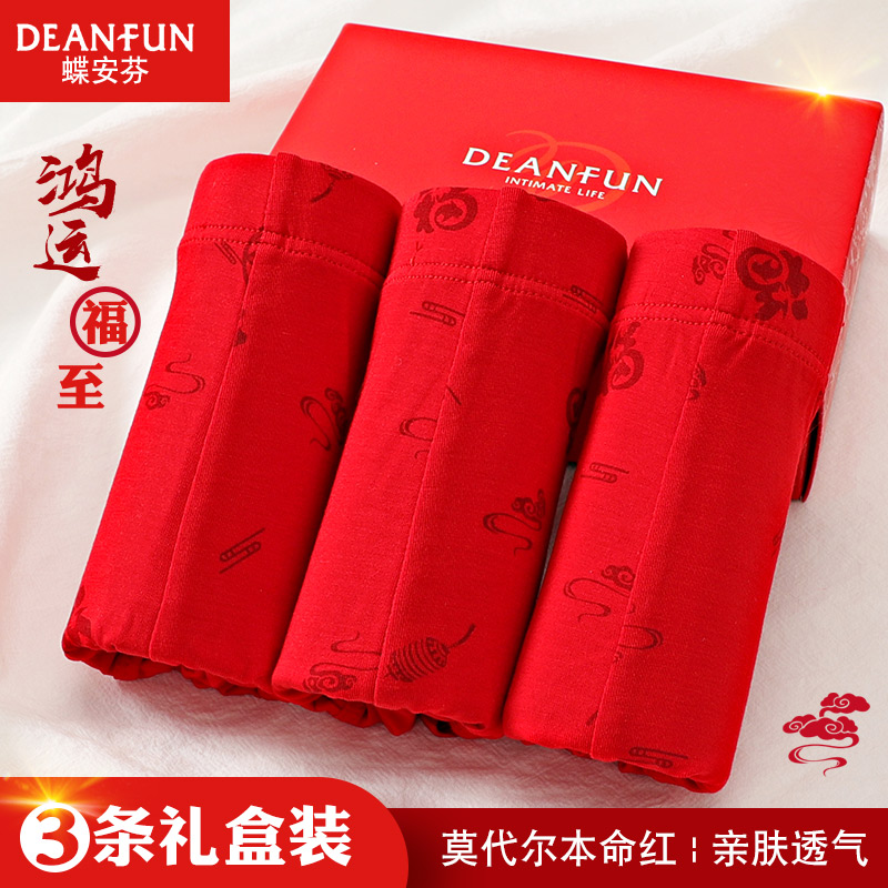 【产品名称:蝶安芬本命年男士内裤莫代尔男中腰平角结婚大红青年红色四角裤头】