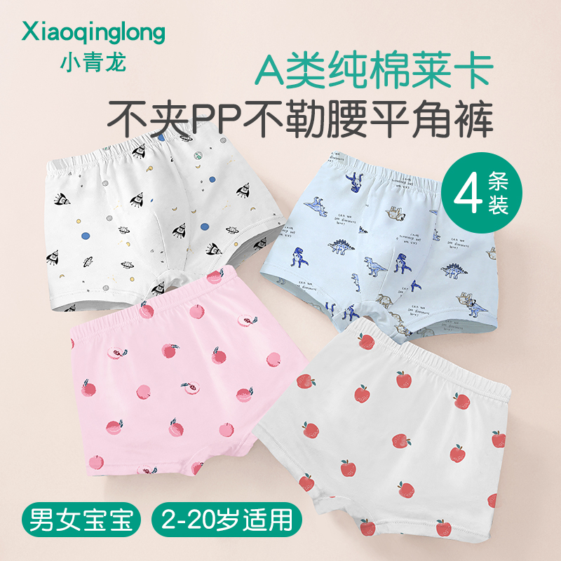 【产品名称:小青龙儿童内裤男童女童平角四角裤纯棉2-18岁宝宝卡通中大童短裤】
