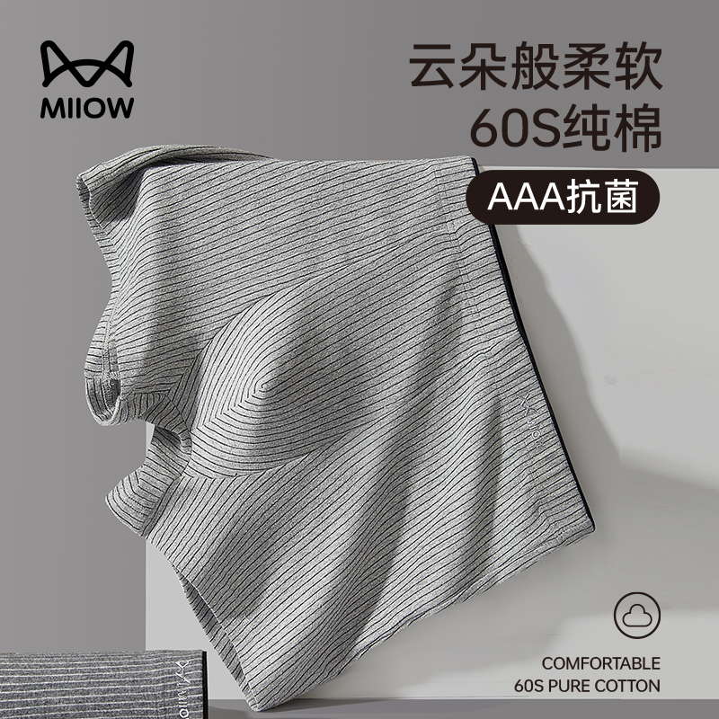 【产品名称:猫人男士内裤纯棉四角短裤男生桑蚕丝抗菌透气平角裤头裤衩男款】