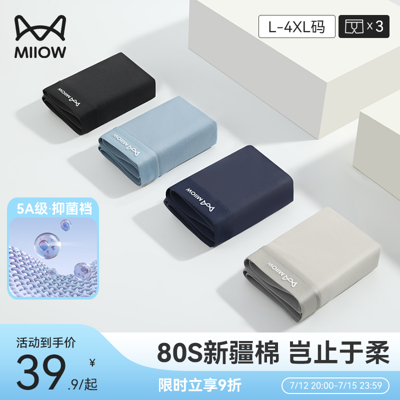 【产品名称:猫人内裤男纯棉平角内裤男生裤衩男四角内裤舒适纯棉内裤透气男生】