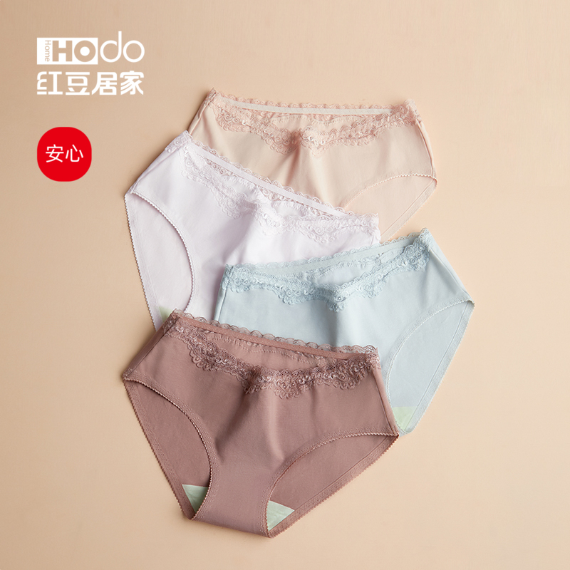 【产品名称:红豆女士内裤抗菌裆中腰蕾丝性感透气短裤女生无痕裤头女式三角裤】