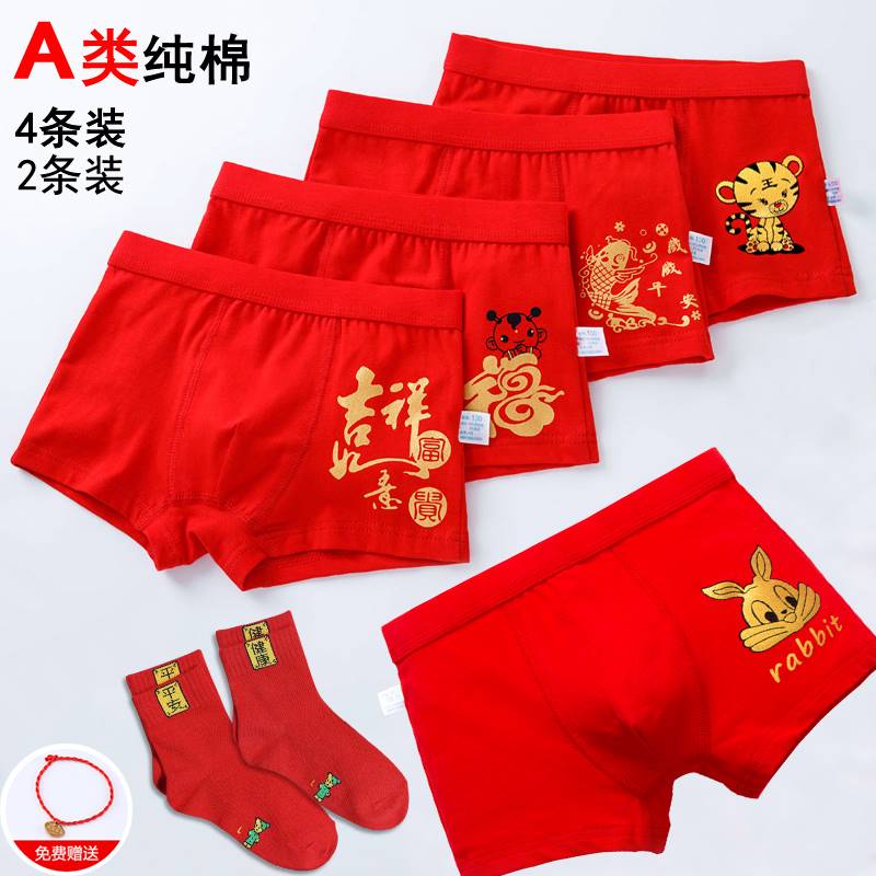 【产品名称:儿童红色内裤男童12岁纯棉2023兔年男孩子本命年红内裤大童青少年】