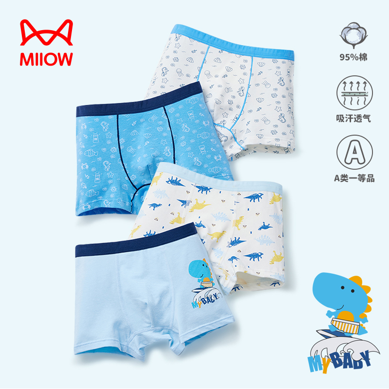 【产品名称:猫人儿童内裤男童女童纯棉夏季薄款男孩中大童平角四角裤全棉短裤】