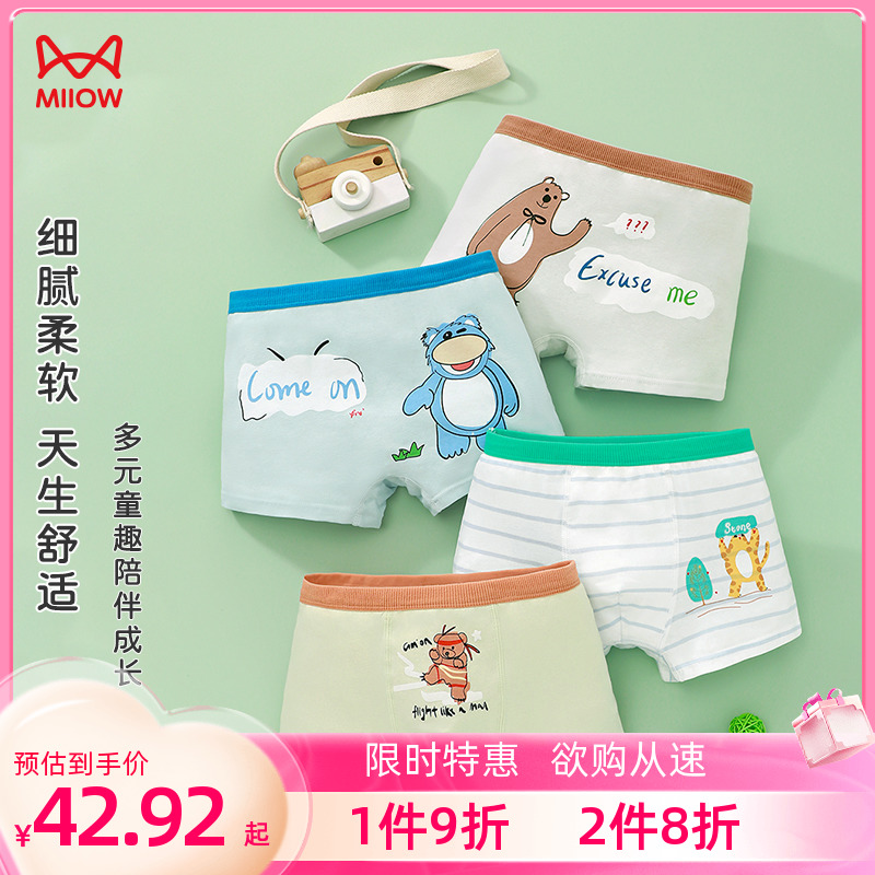 【产品名称:猫人儿童内裤男童纯棉大童小孩四角裤平角短裤儿童内衣裤不夹屁屁】
