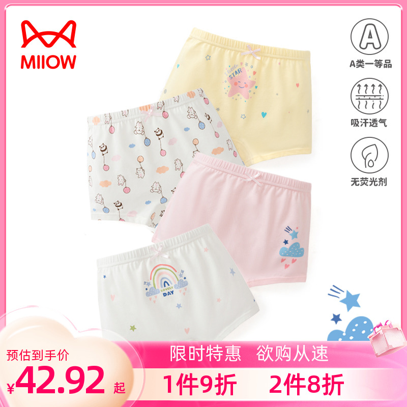 【产品名称:猫人儿童内裤男童夏季薄款纯棉四角短裤舒适透气女童内裤全棉平角】