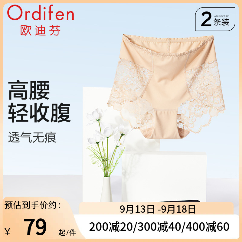 【产品名称:欧迪芬新款性感高腰蕾丝收腹裤冰丝内裤女士无痕抗菌夏季薄款超薄】
